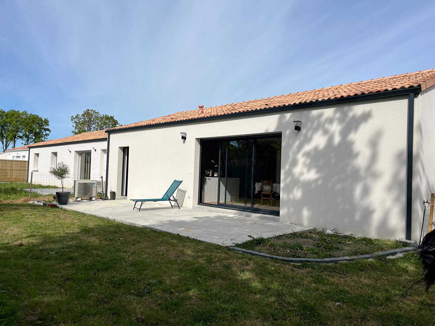 Découvrez cette maison de 2024, offrant un cadre de vie moderne et fonctionnel. Elle se compose d'un hall d'entrée avec placard, ouvrant sur une grande pièce de vie lumineuse de 43 m² avec cuisine américaine aménagée et équipée. Un dégagement dessert trois chambres, dont une avec dressing et deux autres avec placards intégrés, ainsi qu'une salle d'eau et un WC indépendant. Un garage attenant de 24 m² avec espace buanderie et faux grenier complète ce bien, offrant des solutions de rangement supplémentaires.